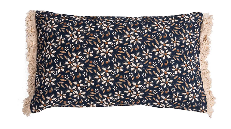 Coussin à franges imprimé fleurs Deco&Co bleu L.50 x l.40 cm