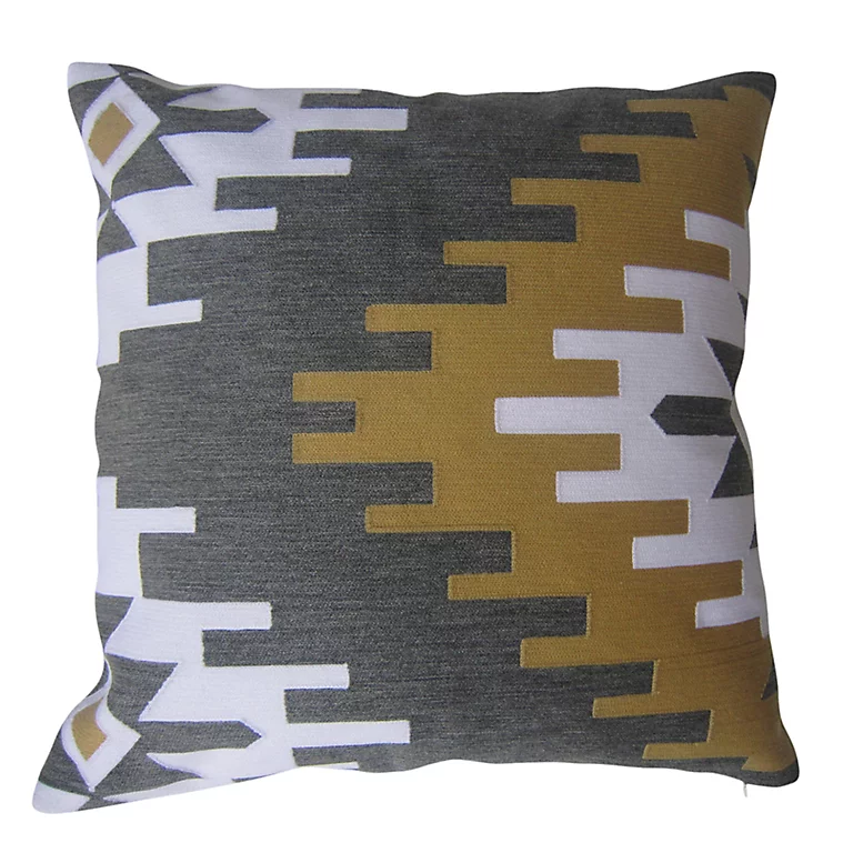 Coussin Suming 45×45 cm Avec broderies géométriques Jaune moutarde