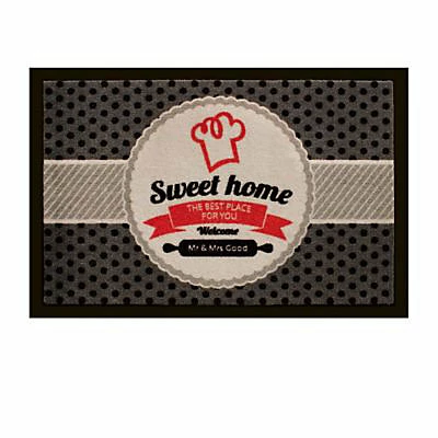 Accessoire clé de votre entrée. le paillasson d’intérieur couleur gris rouge de dimensions 50 x 75 cm “Sweet Home Cooking” se montre aussi pratique que décoratif.