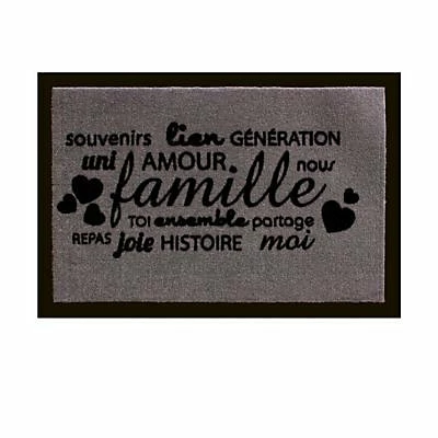 Accessoire clé de votre entrée. le paillasson d’intérieur gris de dimensions 40 x 60 cm Famille se montre aussi pratique que décoratif.