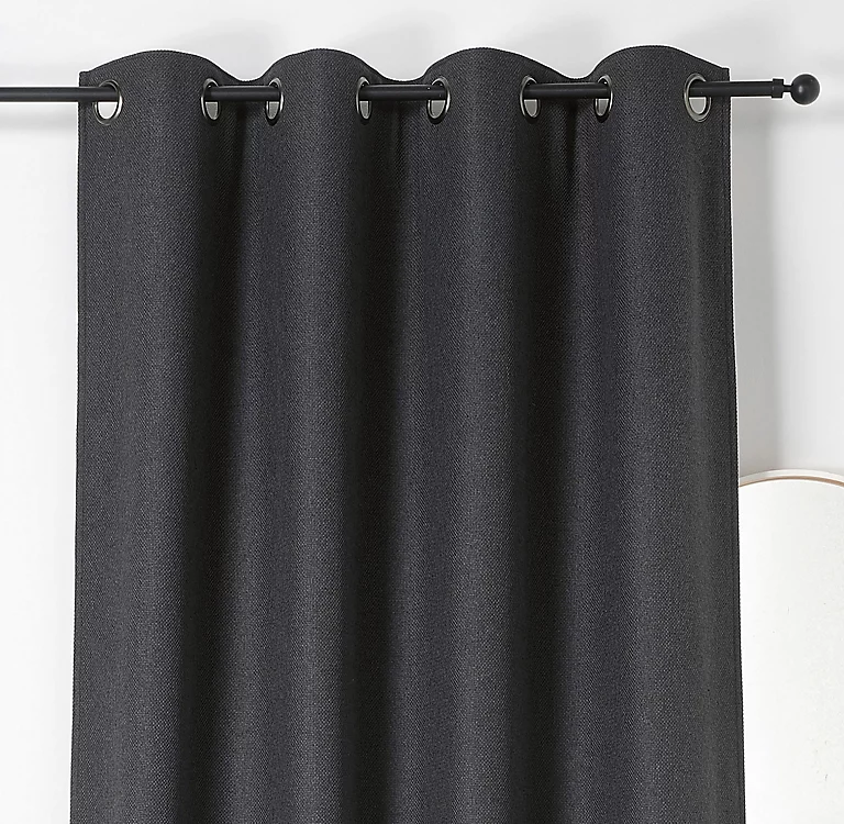 - Rideau à oeillets ronds coloris canon de fusil, diamètre intérieur 40 mm.