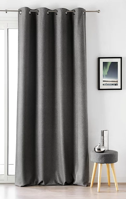 - Rideau à oeillets ronds coloris canon de fusil, diamètre intérieur 40 mm.