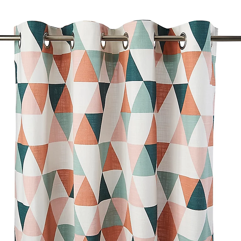 Le rideau RIMA est orné d’un motif de triangles qui habillera votre fenêtre en toute élégance. Ses coutures invisibles donneront le magnifique drapé que vous recherchiez. Utilisez ce rideau sans doublure si vous souhaitez tamiser la lumière du jour, vous protéger des regards indiscrets et réduire le bruit extérieur. Pour la touche finale, associez-le avec nos coussins RIMA assortis ou combinez-le avec des couleurs unies assorties pour créer un look harmonieux adapté à vos goûts. Le kit pour ourlet rapide fourni permet d’ajuster le rideau à la longueur désirée. Nous vous recommandons de laver le rideau avant de faire l’ourlet car il peut rétrécir de ≤1% à 3%. Facile à accrocher : glissez les œillets sur une barre à rideau de Ø19mm qui supportera pleinement le poids du rideau. Pour une apparence harmonieuse, choisissez une barre chromée assortie à la finition mate métallisée des œillets.