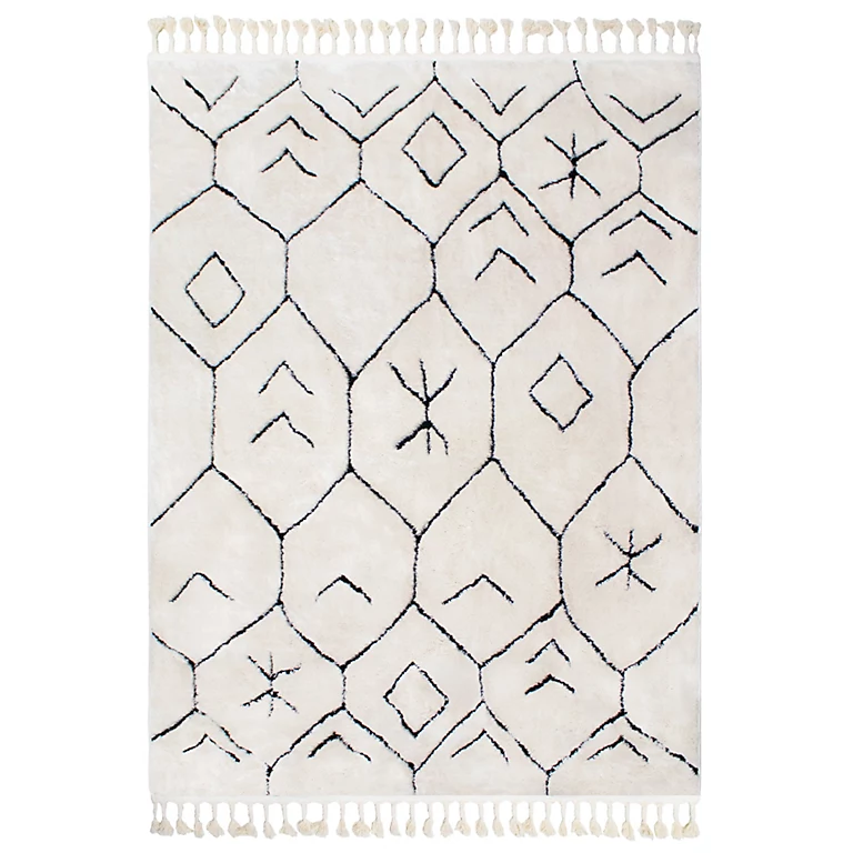 Tapis Berber frange motif berbère 150 x 200 cm noir et blanc