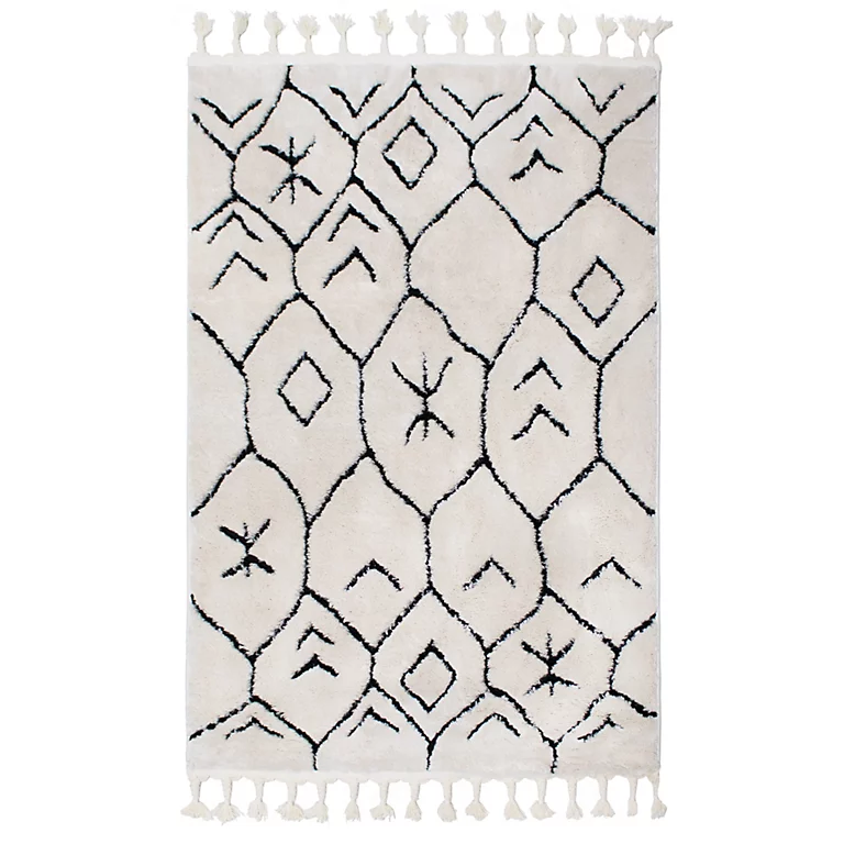 Tapis Berber franges motif berbère 100 x 150 cm noir et blanc