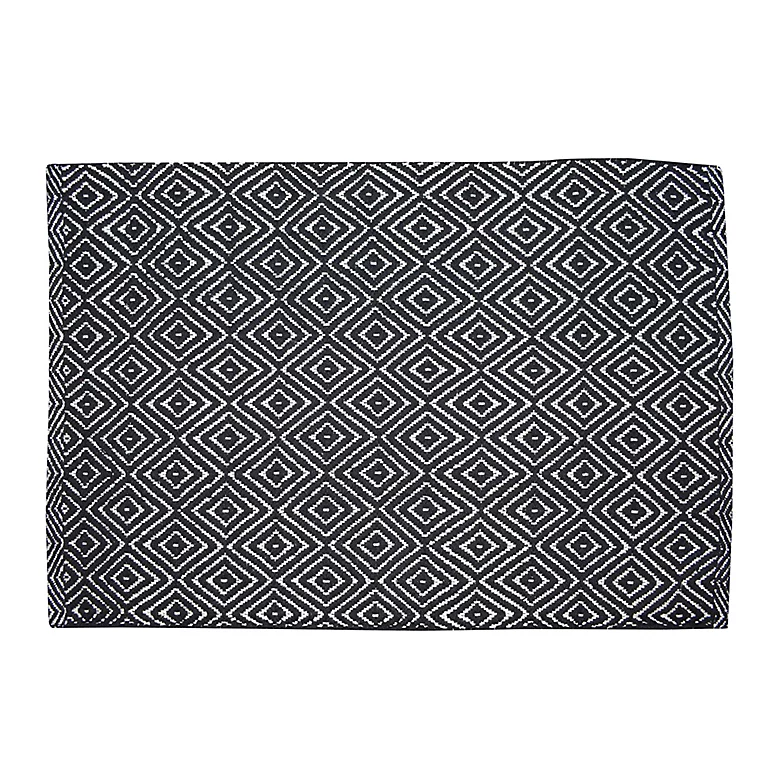 Tapis coton Diamond GoodHome 60 x 90 cm noir et blanc