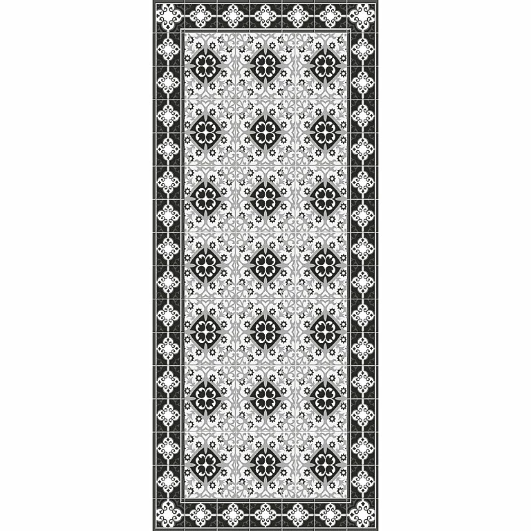 Tapis vinyle motif arabesques blanc, noir et gris L.116 x l.49,5 cm x ep. 2 mm