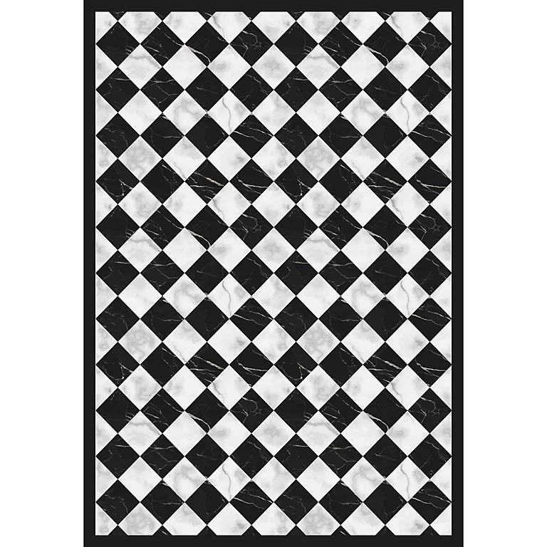 Tapis vinyle motif carreaux de marbre noir et blanc L.95 x l.66 cm x ep. 2 mm