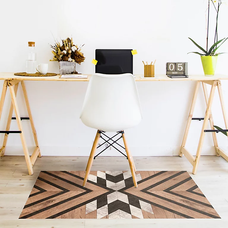 Tapis vinyle motif chevrons imitation parquet noyer L.95 x l.66 cm x ep. 2 mm