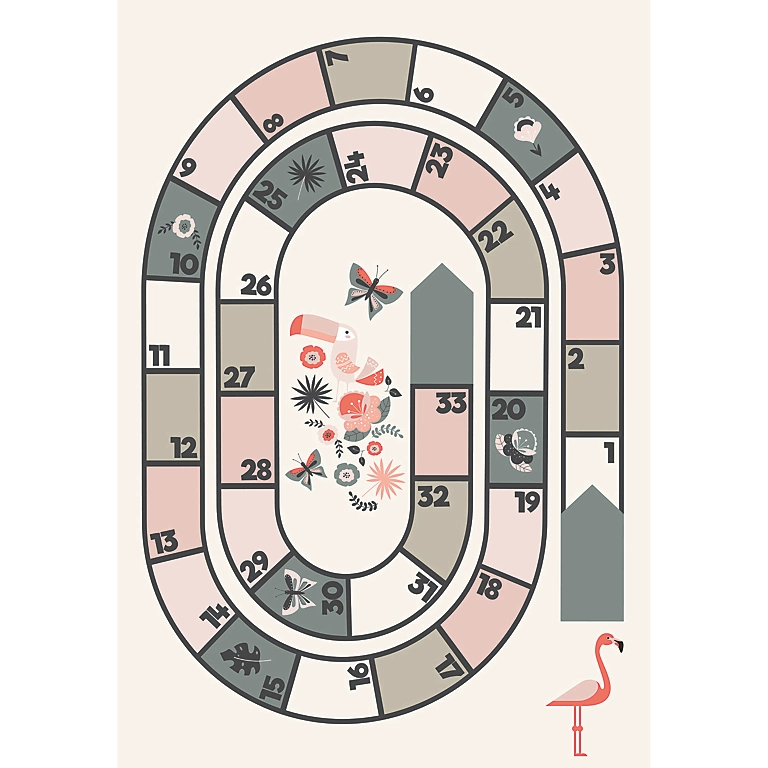 Tapis vinyle motif jeu de l’oie rose, gris et blanc L.95 x l.66 cm x ep. 2 mm