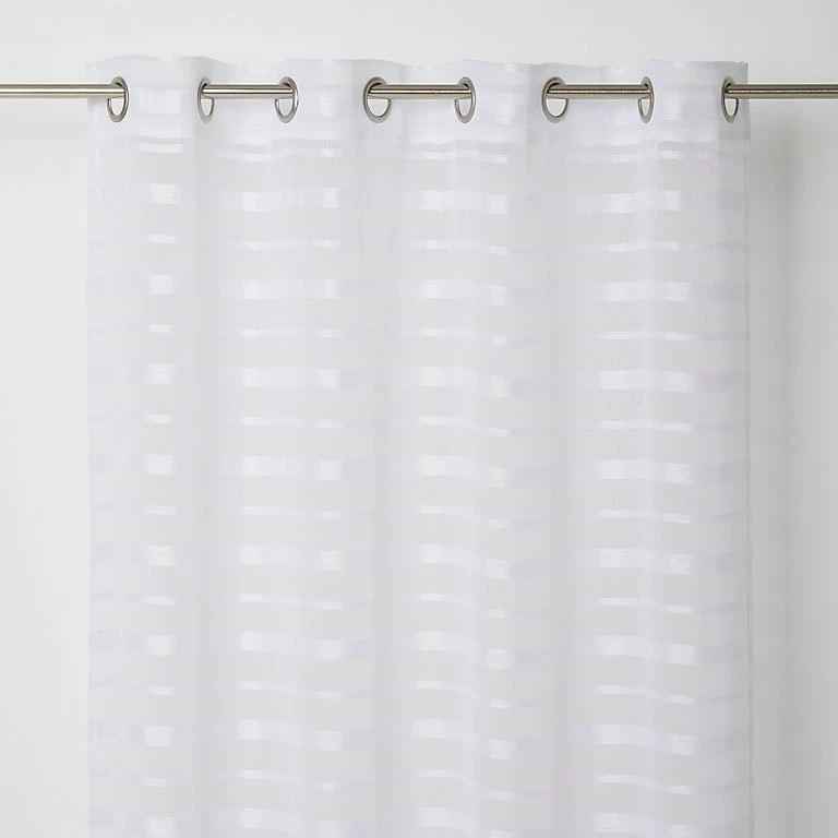 Ce voilage GoodHome Wakea blanc 140 x 260 cm en satin orné de rayures horizontales habillera votre fenêtre en toute délicatesse.