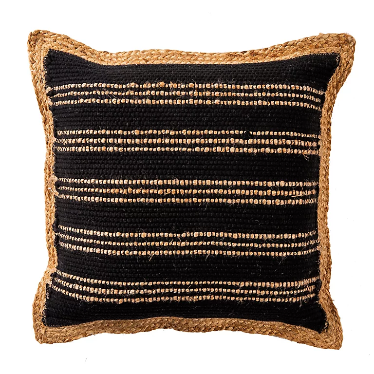 Coussin Chindi rayé Deko & Co noir et jute L.60 x l.40 cm