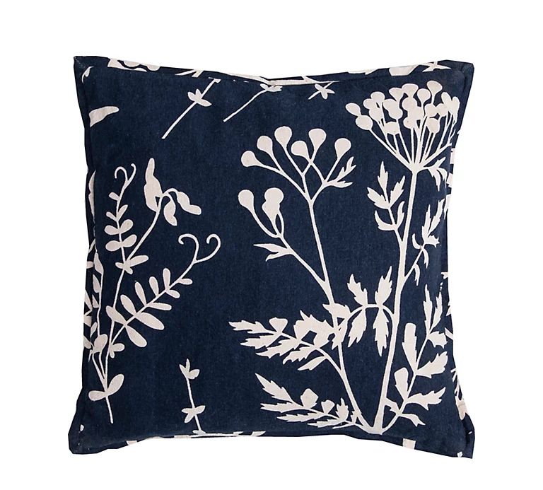 Coussin imprimé fleurs Deko & Co bleu et blanc L.40 x l.40 cm