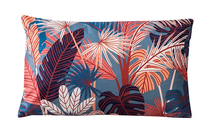 Coussin velours imprimé Pampa Deko & Co rose et bleu L.50 x l.30 cm