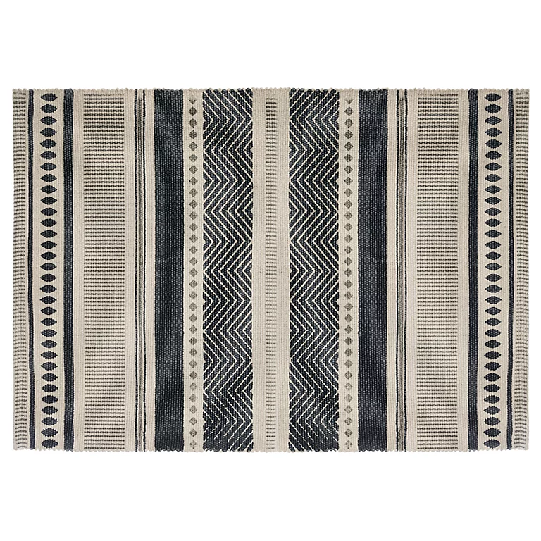 Tapis à franges imprimé Atmosphera coton gris L.90 x l.60 cm
